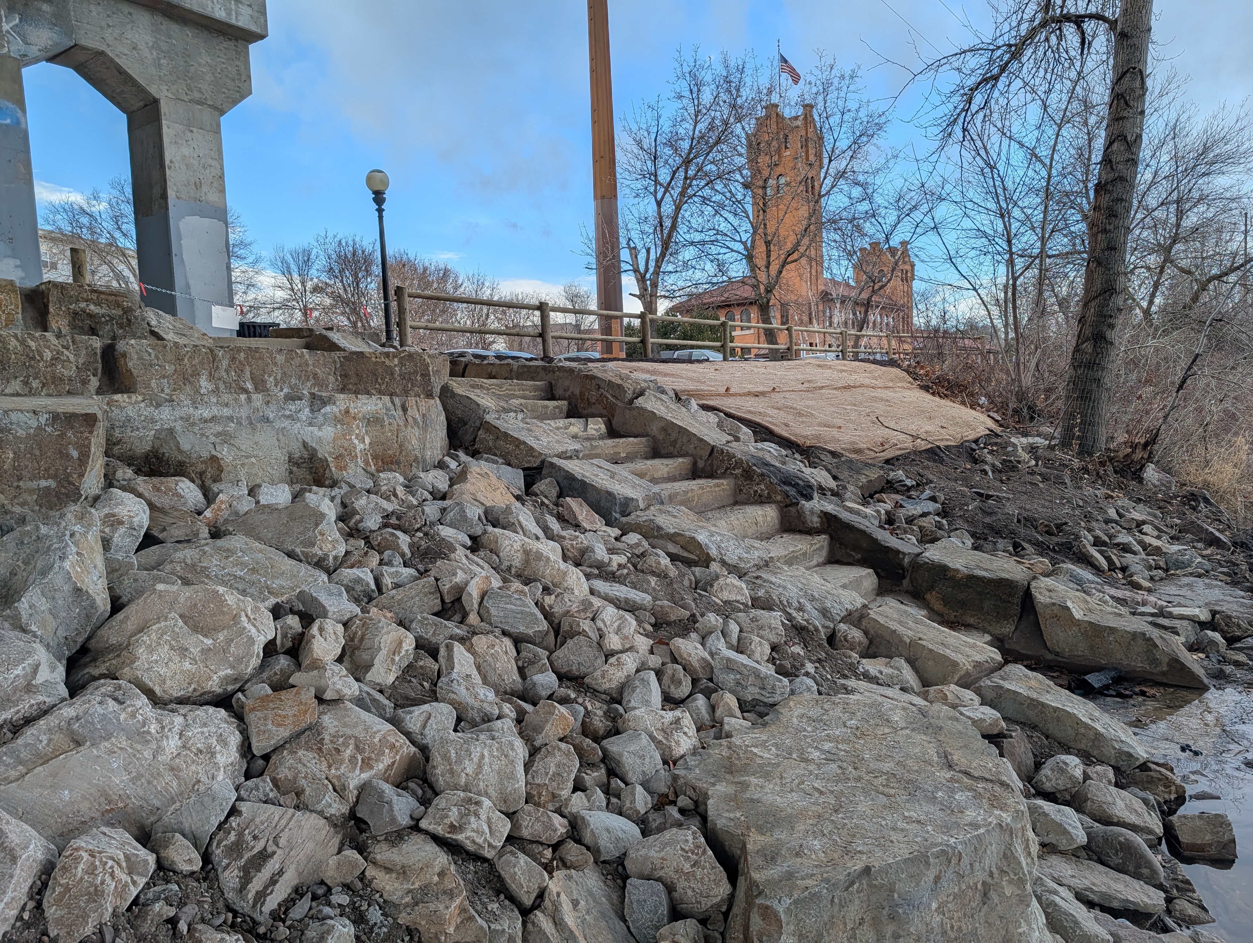 | The Toole Park River Access site was the first project to be completed on the south side of the river. This access site provides a set of stairs for river access with terrace boulder seating. | ![]() |