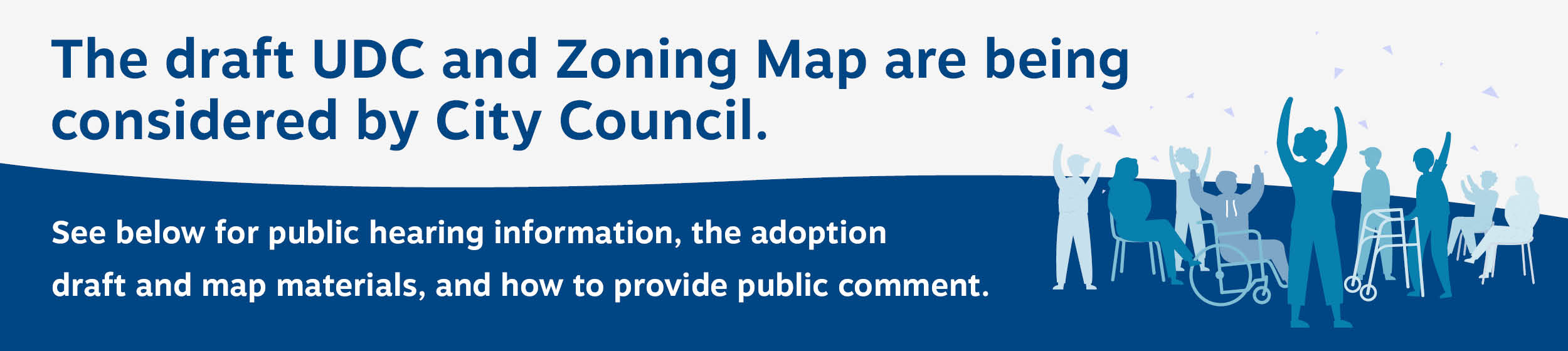 - View the PDFs of the Unified Development Code (UDC), Zoning Map, and associated materials from the side bar on this web page or attached the agendas for the upcoming public meetings.